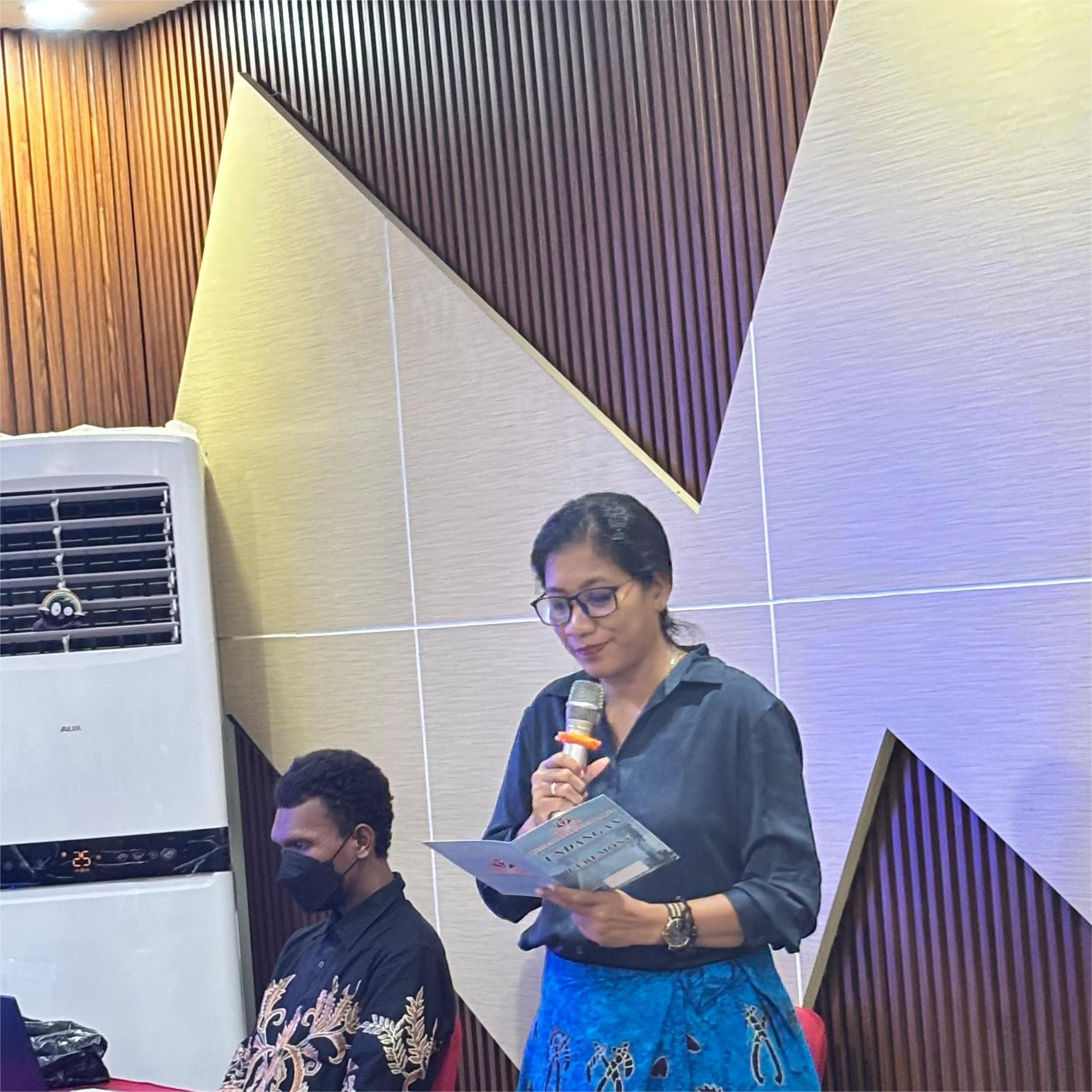 Dr. Godefridus Samderubun, SS., M.Si (Seksi Acara) Paustina Ngali Mahuze, S.Ag., M.Pd (Penanggung Jawab) Heribertus Silubun, S.H (Ketua DPR Provinsi Papua Selatan) Dr. Maria M. Reginaldis, S.Sos., M.Si (Moderator)
